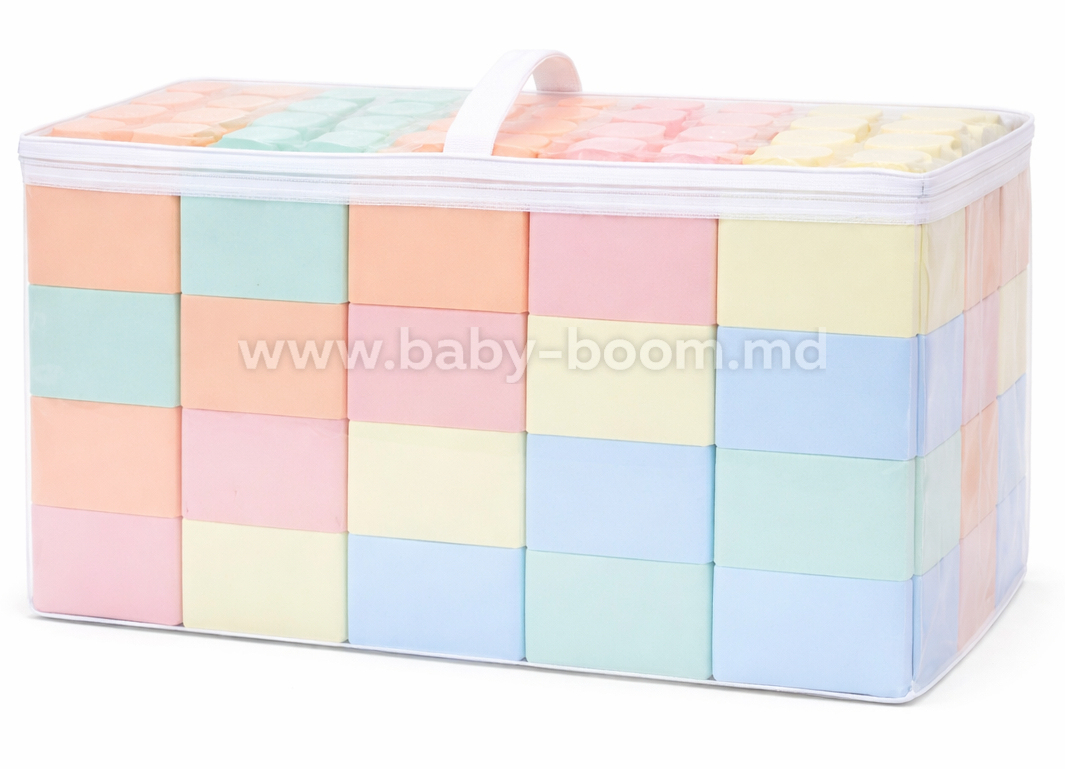 Culorile pastelate atrag atentia si stimuleaza jocul creativ, iar geanta de depozitare face curatenia rapida si usoara.