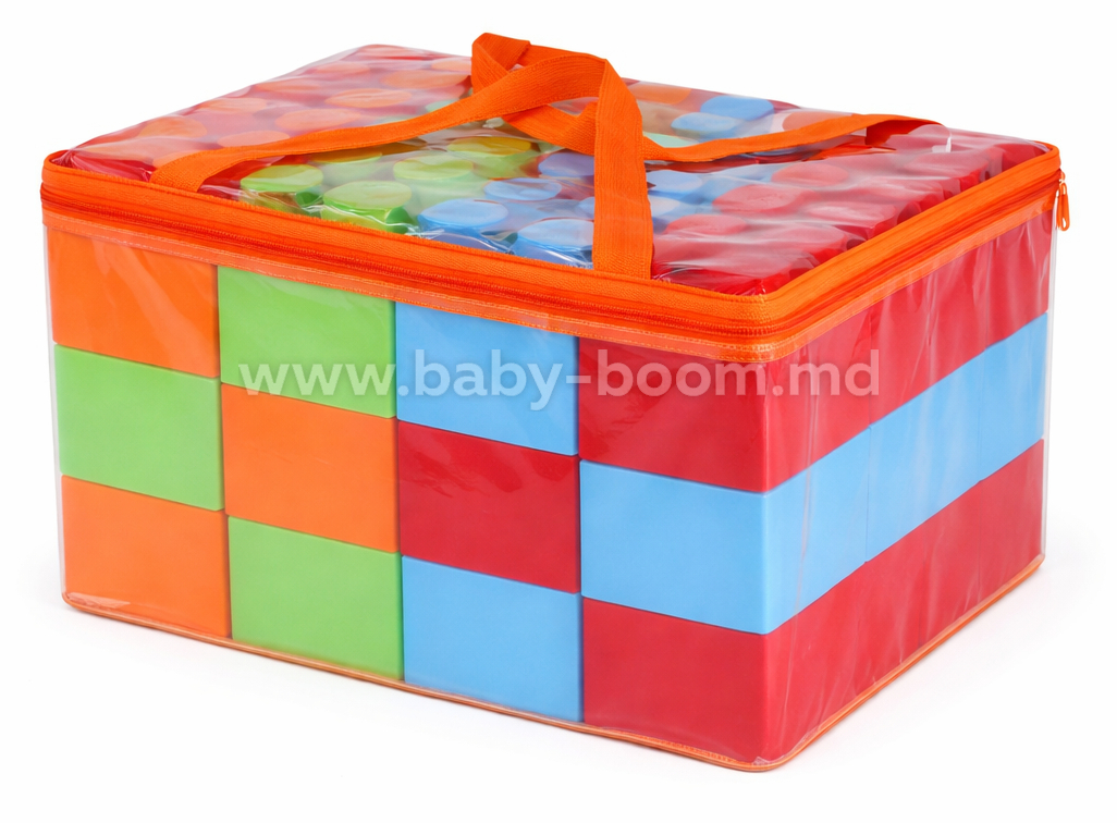 Setul contine blocuri in culori vii - rosu, verde, albastru si portocaliu - care transforma joaca intr-o experienta plina de bucurie. Geanta transparenta cu maner faciliteaza depozitarea si transportul rapid.