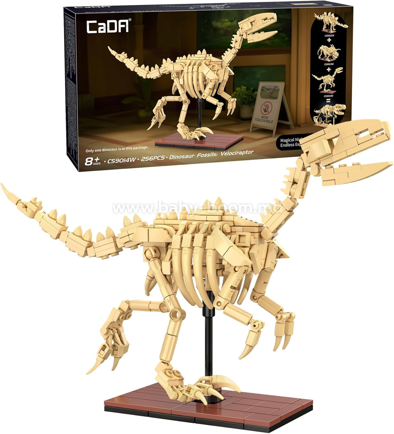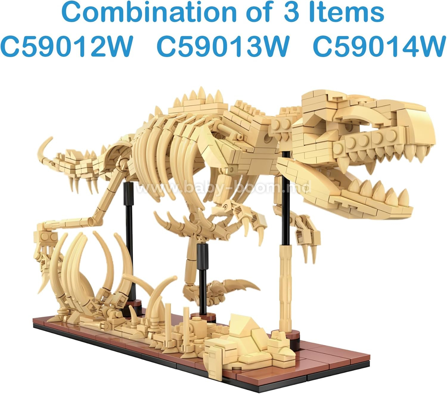 O altă caracteristică unică a acestui model este că poate fi combinat cu alte două modele de dinozauri (C59013W - Triceratops și C59014W - Velociraptor) pentru a crea un Tyrannosaurus rex și mai mare! Acești dinozauri sunt grozavi atât pentru joacă, cât și pentru expunere, indiferent dacă construiți un singur dinozaur sau un set complet.