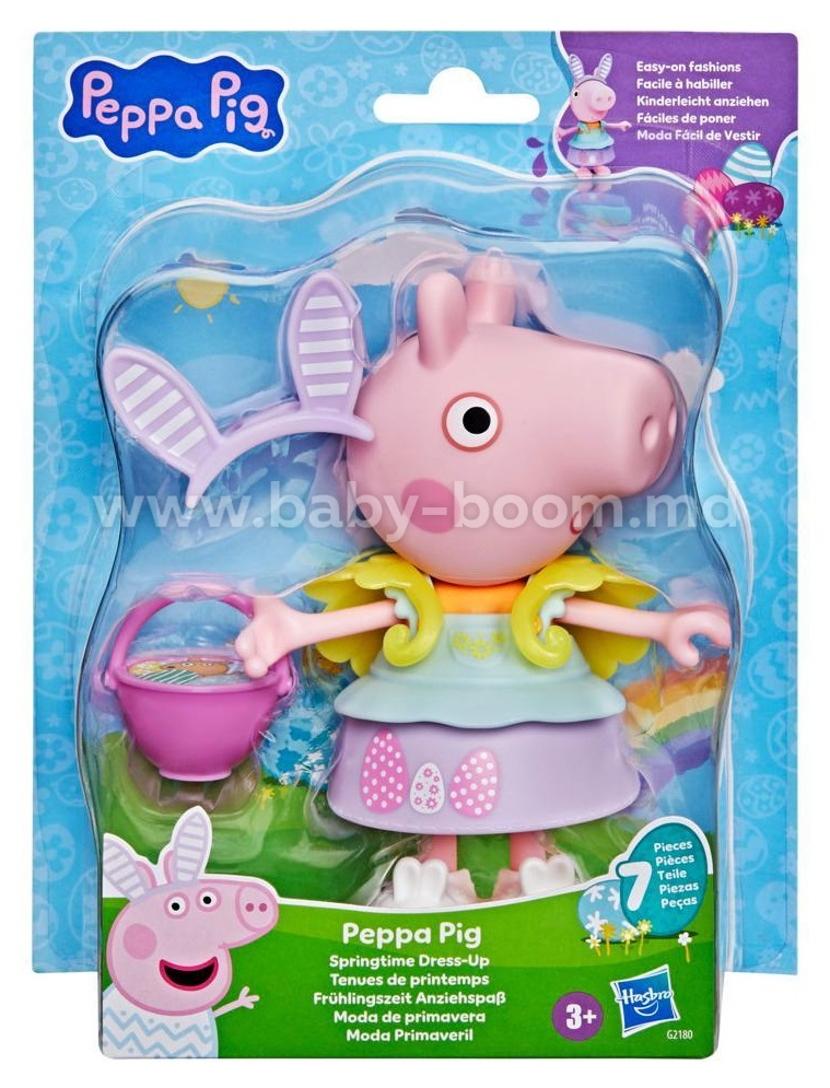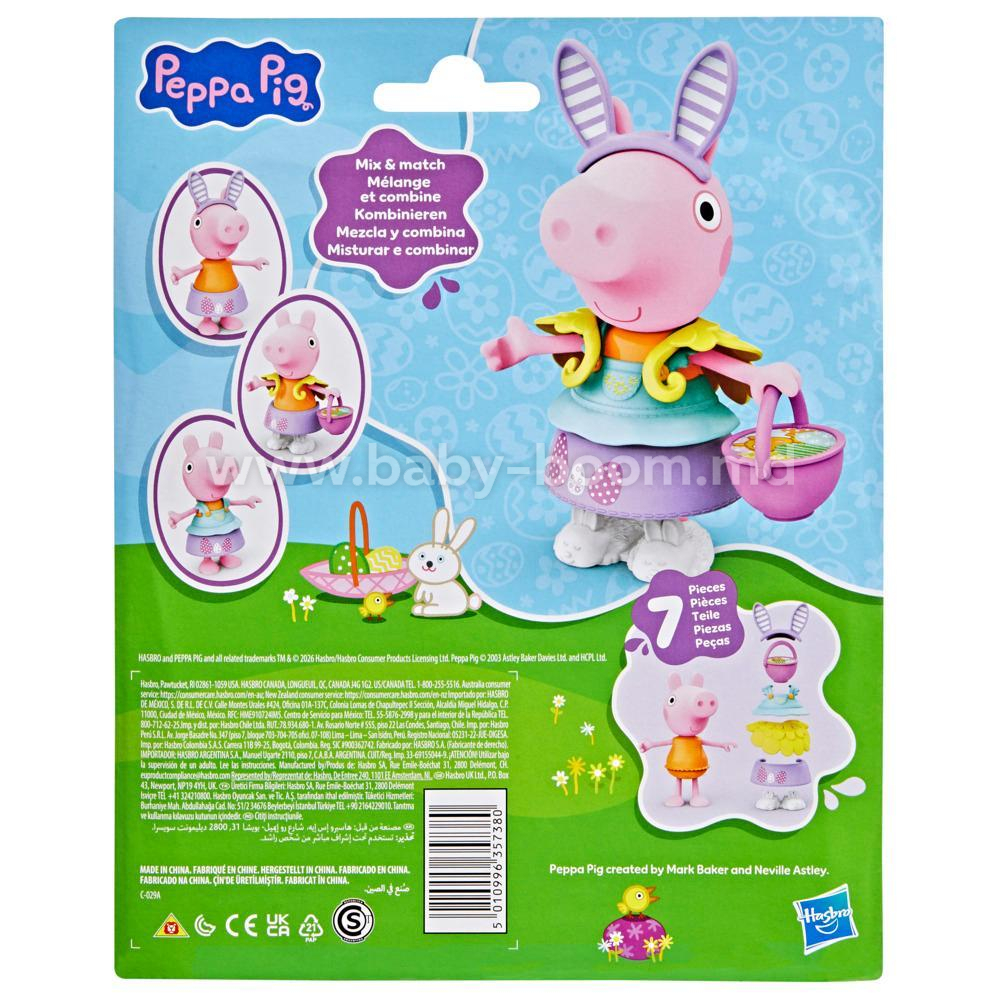 • 6 accesorii tematice de combinat: Figurina Peppa vine cu urechi de iepuraș, pantofi de iepuraș, o pelerină galbenă de pui, un coșuleț cu ouă, un top de primăvară și o fustă decorată cu ouă. Copiii pot combina și combina diferite accesorii pentru a crea ținute distractive și drăguțe.