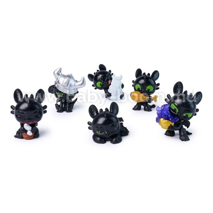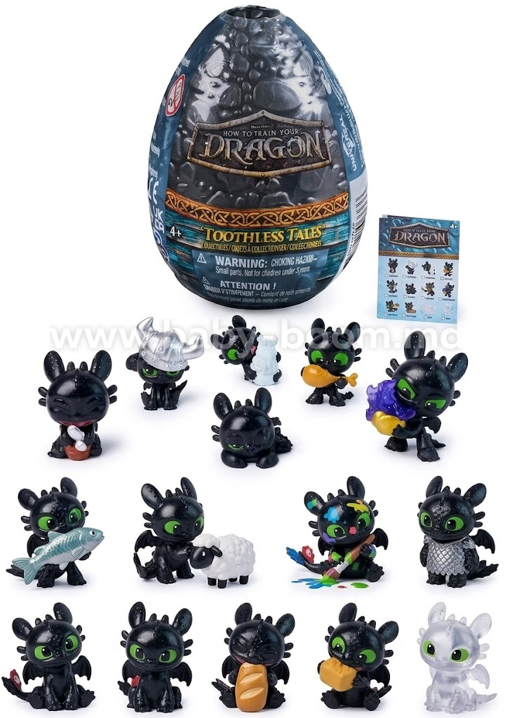 - Colecționează-i pe toți: Există peste 12 figurine diferite de adunat! Toothless poate fi surprins dormind, mâncând pește, purtând o cască sau chiar în variante rare, cu sclipici.
