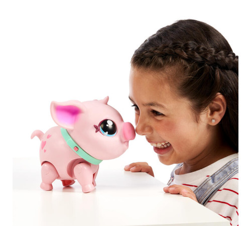 Faceți cunoștință cu Piggley, un porcișor adorabil care scoate mormăituri amuzante când este mângâiat, hrănit și plimbat în lesă! Pigli are un nas delicat care începe să-ți adulmece mâna amuzant când o mângâi. Acest mic animal de companie va fi un prieten grozav pentru un copil, oferind multe scenarii de joacă interesante.