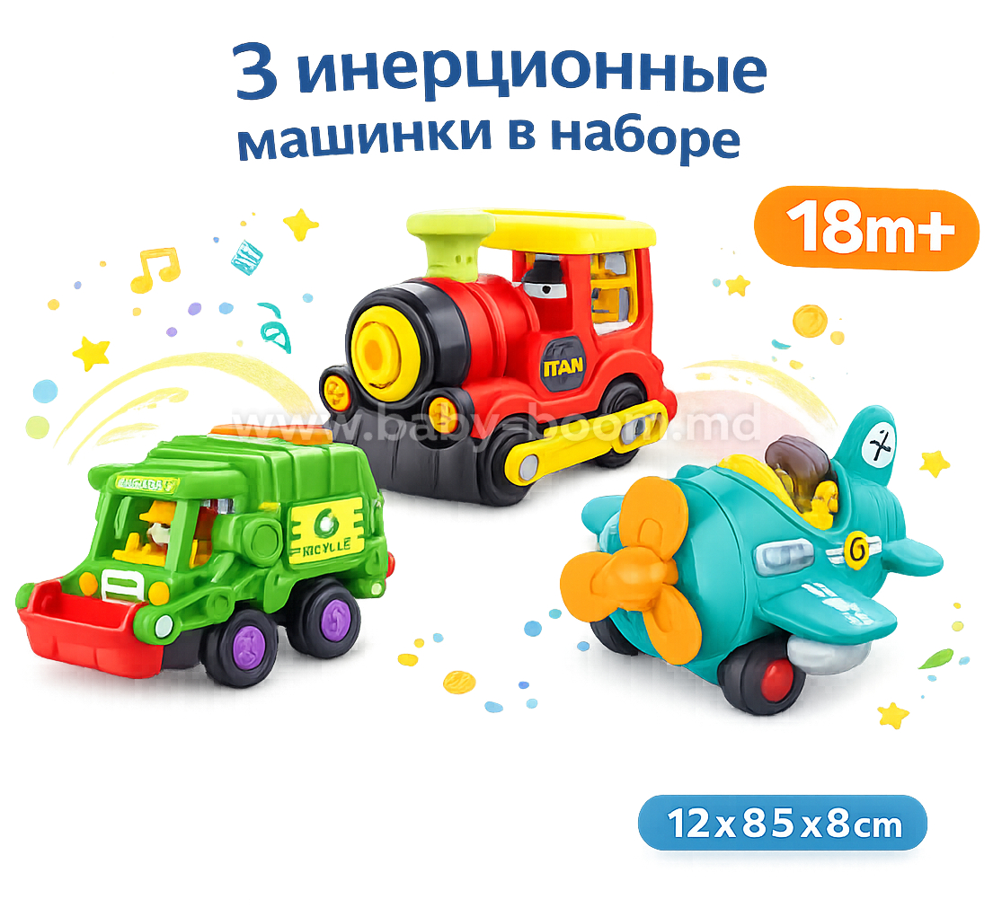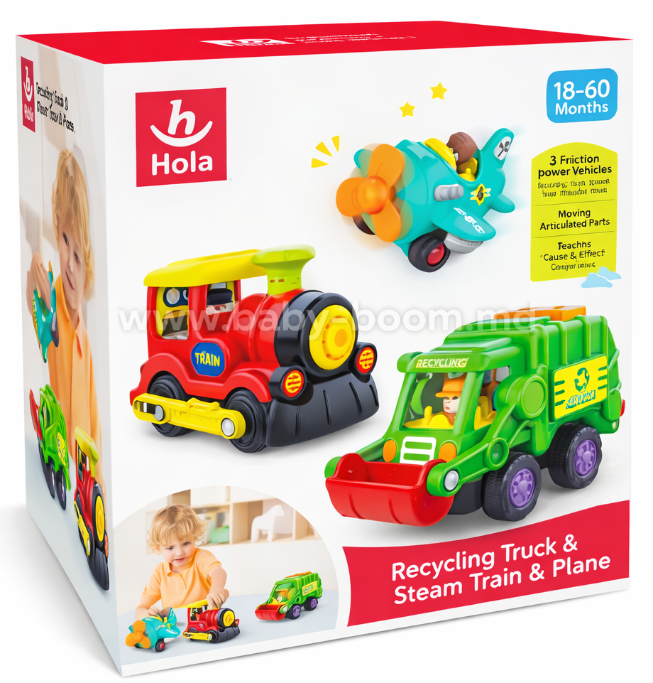 Oferiți copilului emoții vii și joc captivant cu setul de transport de la Hola Toys! Setul include trei vehicule cu mecanism inerțial, concepute pentru copii de la 18 luni. Fiecare jucărie se activează printr-o simplă împingere, nu necesită baterii și este ideală pentru joacă activă și educativă.