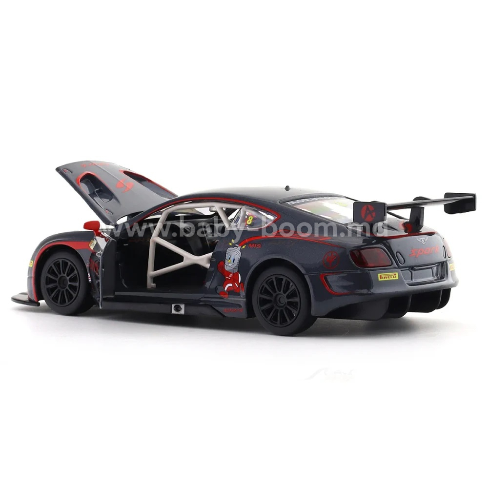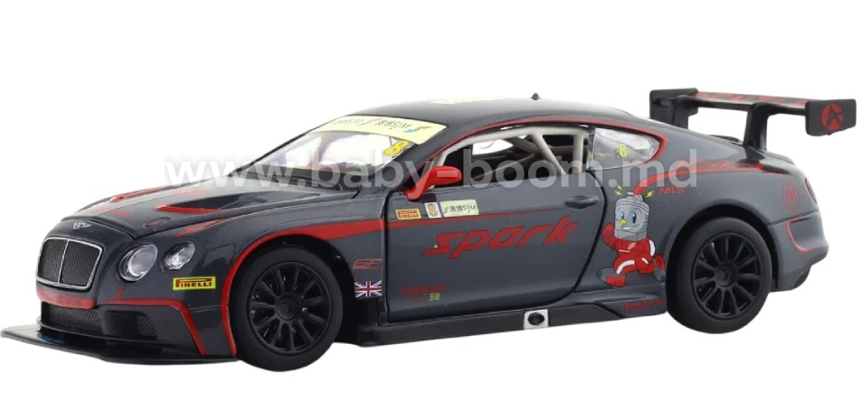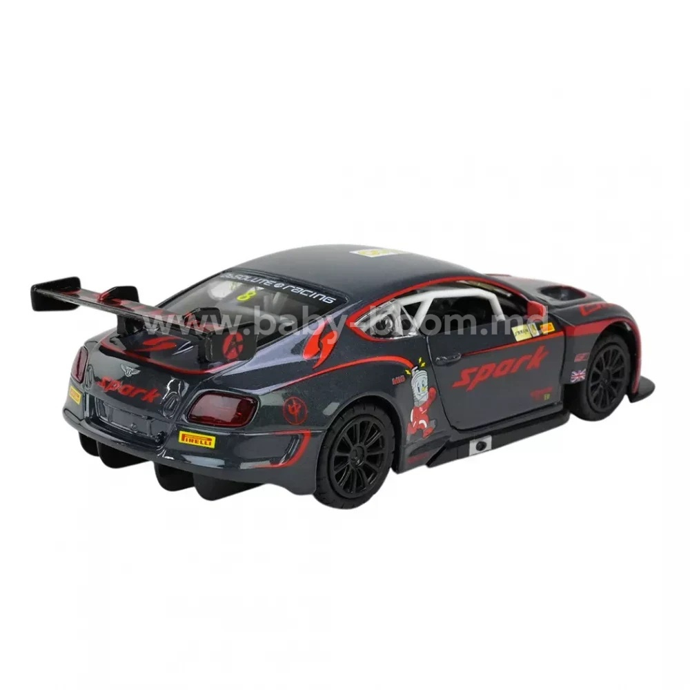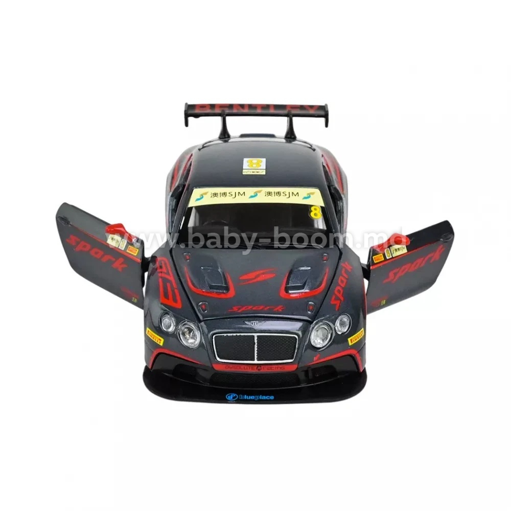Mașinuța metalică Bentley Continental GT3 Concept, realizată la scara 1:24, reprezintă un automobil de curse cu design sportiv. Culorile închise și detaliile realiste o fac potrivită pentru joacă și colecționare.