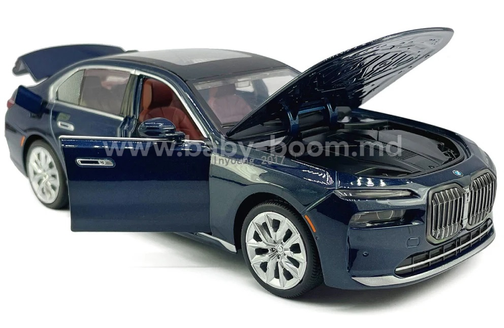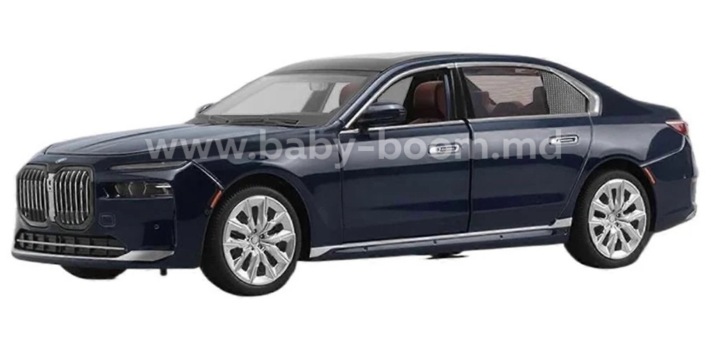 Mașinuța metalică BMW i7, realizată la scara 1:24, este o replică elegantă a unui sedan modern de clasă premium. Culoarea albastru închis și detaliile realiste o fac potrivită atât pentru joacă, cât și pentru colecționare.