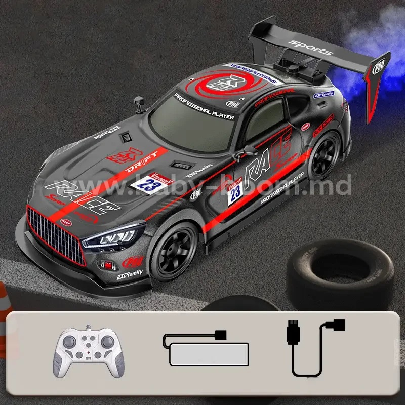Mașina de curse radiocomandată perfectă! Această mașinărie de mare viteză are roți profilate, o caroserie rezistentă la șocuri (înlocuibilă) și, cel mai important, suficientă putere pentru a depăși orice obstacol! Radiocomanda convenabilă deschide o lume de posibilități: mișcare înainte, înapoi, stânga și dreapta. Această frumusețe puternică va capta imediat atenția copilului dumneavoastră și va deveni jucăria preferată pentru anii următori!
