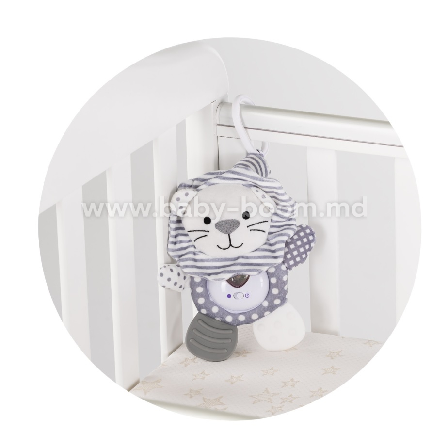 Designul compact și atașarea ușoară la cărucior sau pătuț fac din aceste jucării de pluș companionul perfect pentru orice bebeluș. Funcționează cu două baterii AG13 (incluse) și sunt ușor de controlat cu două butoane: pornit/oprit și muzică/lumină. Sunt potrivite pentru nou-născuți de la 0 luni.