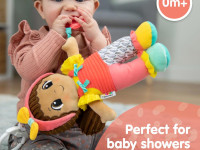 My Friend Jasmine de la Lamaze este o primă păpușă perfectă pentru copil! Este îmbrăcată într-un salopet roz drăguț, cu picioare șifonate și multe alte texturi fascinante de țesătură de explorat. Are o față adorabilă brodată și o floare cu zdrăngănitoare care este legată de mână pentru a arăta ca o poșetă drăguță. Cu toate aceste caracteristici captivante, Jasmine vă ajută să vă ghidați copilul prin primele etape importante de dezvoltare. Culorile și modelele contrastante luminoase stimulează dezvoltarea vizuală a bebelușului, în timp ce diferitele texturi pentru a prinde și prinde ajută la îmbunătățirea abilităților motorii fine și a dezvoltării tactile. Iasomia este, de asemenea, o jucărie minunată pentru a crea relații cu bebelușul, unde poți începe timpuriu jocul de rol și dezvoltarea abilităților sociale pe măsură ce copilul tău crește. Și lui Jasmine îi place să călătorească! Include o clemă mare care o face ușor de atașat la un cărucior, scaun auto, geantă pentru scutece și multe altele. Învățarea senzorială va înflori cu siguranță într-o nouă prietenie minunată cu My Friend Jasmine de la Lamaze.