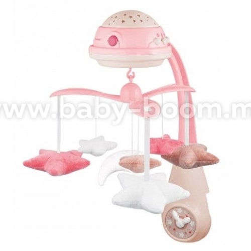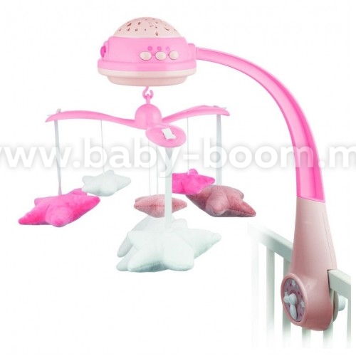 Datorită numeroaselor sale funcții, jucăria are un efect pozitiv asupra dezvoltării coordonării vizuale și auditive a copilului. Proiectorul afișează stele multicolore și luna. Sunetele plăcute ale unei cutii muzicale și sunetele naturii vă vor ajuta copilul să se calmeze și să adoarmă. Caruselul are la dispoziție 25 de melodii și sunete.