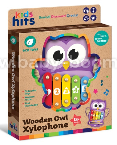 Acest xilofon în formă de bufniță este un instrument minunat de învățare creativă, permițând copiilor să exploreze concepte muzicale simple prin joacă. Având cinci clape colorate, o zornăitoare pe aripile bufniței și un ciocan de lemn care poate fi depozitat într-un compartiment special, această jucărie este concepută pentru a ajuta copiii să își dezvolte primele abilități muzicale prin joc practic, învățând forme, culori și numărând de la 1 la 5. Jocul cu acest prim instrument muzical îi va ajuta pe cei mici să dezvolte un sentiment de împlinire!