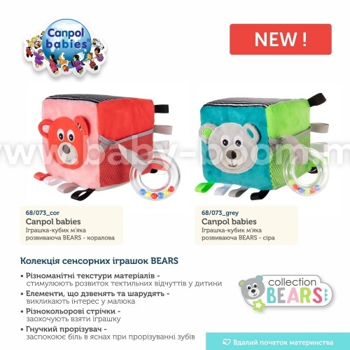 Canpol 68/073 Jucărie de pluș educativă "Cube-Ursulet" (coral)