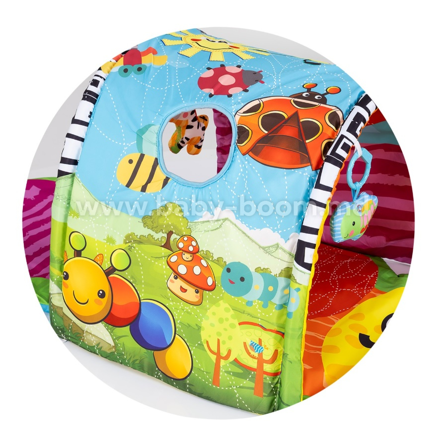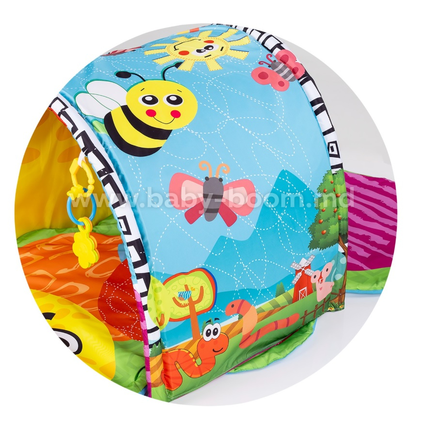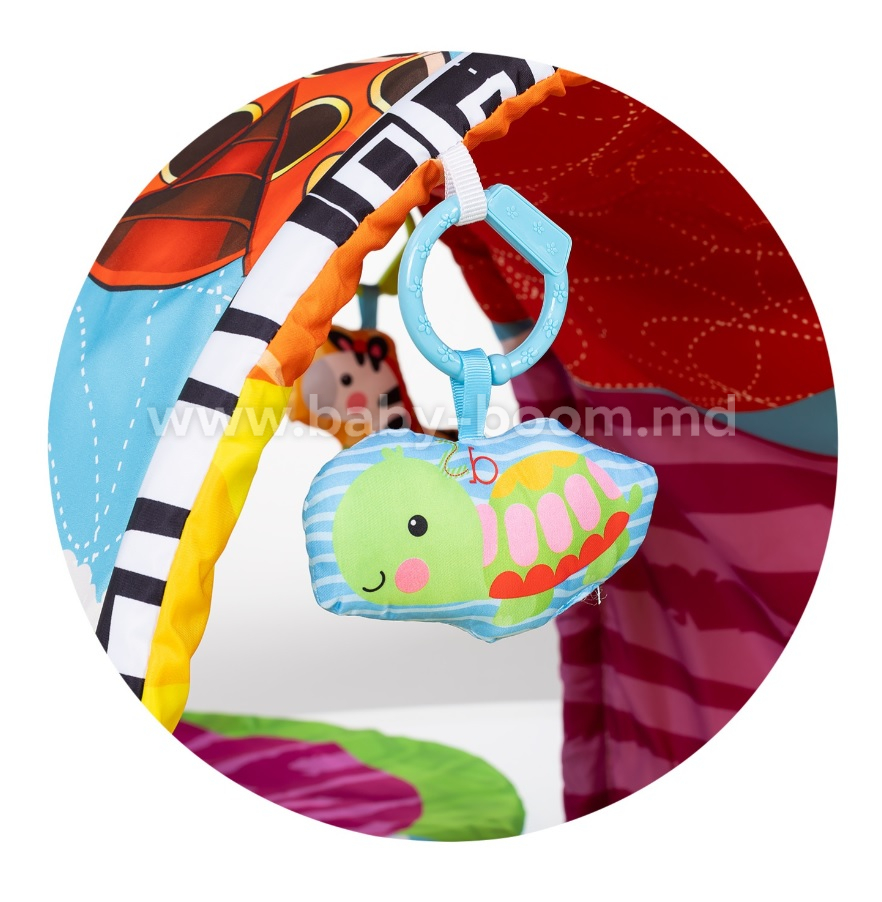 Acest set de joacă activ, cu jucării viu colorate și un covoraș moale, promovează dezvoltarea abilităților senzoriale și motorii. Este ușor de îngrijit, potrivit pentru copiii de la 0 luni în sus și va deveni un companion fidel în timpul primelor experiențe de joacă educaționale ale bebelușului dumneavoastră.