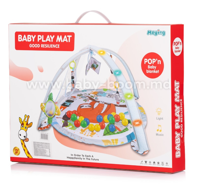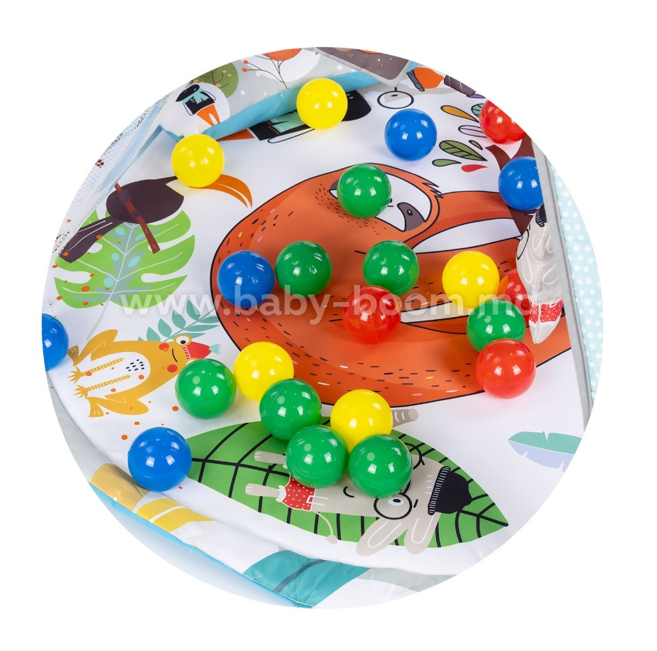 Acest set multifuncțional de joacă cu bile pentru copii combină distracția și dezvoltarea. Covorașul de joacă moale, arcuit, conține diverse jucării agățate, o oglindă și bile colorate, transformând joaca într-o adevărată aventură. Potrivit încă din primele luni de viață, poate fi folosit pentru joacă pe spate și pe burtă sau ca o mini-piscină cu bile pentru copiii mai mari.