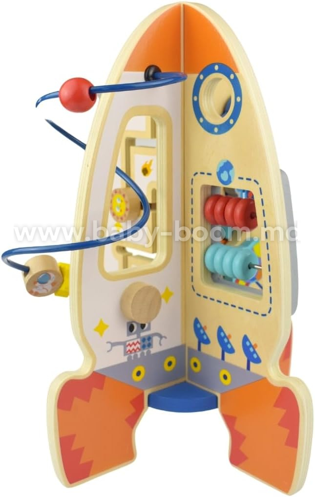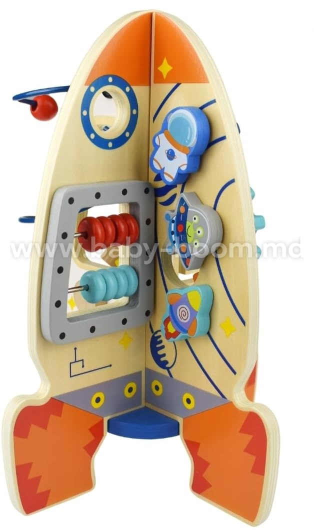 Jucărie din lemn de la Tooky Toy „Rocket” folosind metoda Montessori. Fiecare parte a rachetei prezintă capacități unice. Labirint de sârmă cu figuri și margele de diferite culori și forme. Labirint cu planete. Mecanism cu roți dințate. Abac multicolor. Această tablă plină de culoare va fermeca pe toți copiii. Astfel de jocuri ajută la dezvoltarea abilităților motorii fine și a coordonării ochi-mână. Îi învață bebelușului forme și culori, dezvoltă logica, percepția spațială, abilitățile de rezolvare a problemelor și dau un sentiment al propriului succes și realizări. Jucăria este realizată din materiale de înaltă calitate, acoperită cu vopsea non-toxică pe bază de apă și este complet sigură pentru copii.