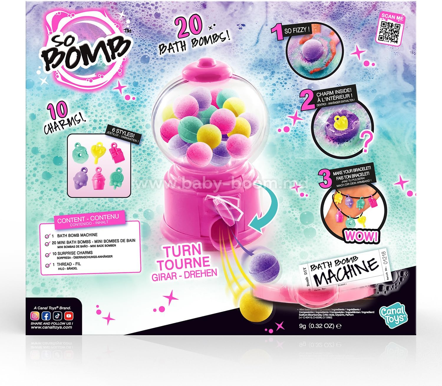 Conținutul cutiei: 1x mașină, 20x bombe de baie, 10x amulete, 1x șnur și 1x manual (Limba engleză nu este garantată)