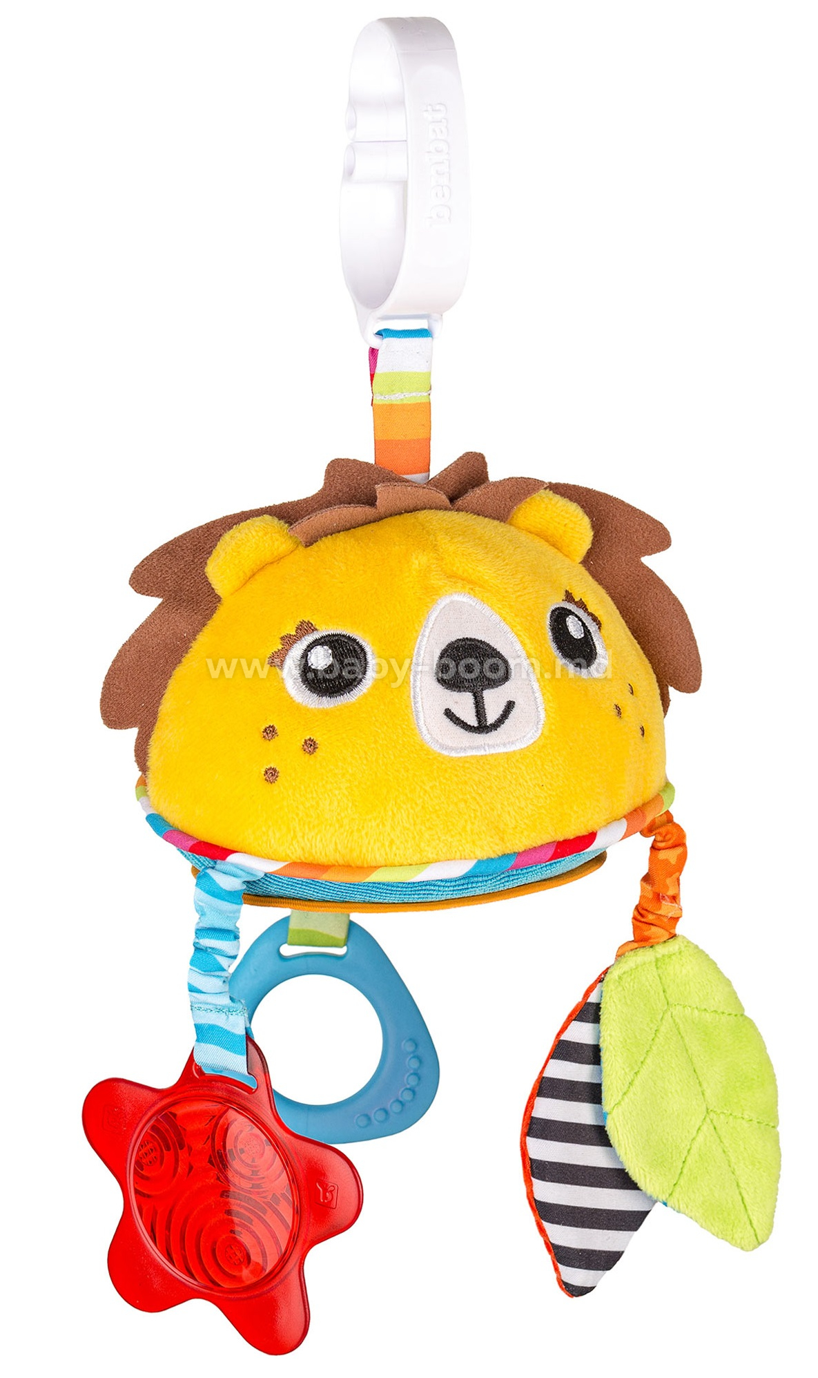 - Clipul cu formă unică, ușor de fixat, asigură că jucăria este întotdeauna în fața copilului.