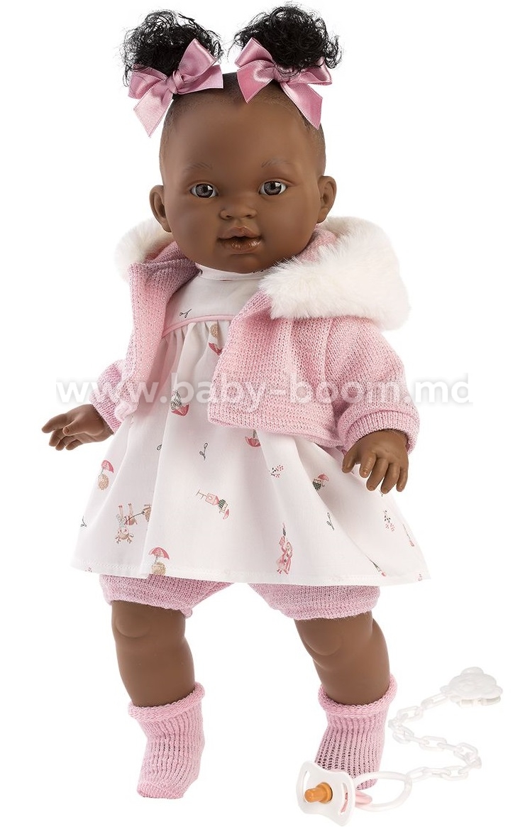 Păpușa interactivă Diara Llorona - edin cea mai recentă colecție a mărcii spaniole Llorens. Diara este îmbrăcata într-o rochie albă cu animale, pantaloni scurți roz, o jachetă roz cu glugă de blană și șosete roz. Păpușa are o față frumoasă, ochi căprui și păr negru. Burtica păpușii este umplută cu umplutură moale, ceea ce o face ideală pentru îmbrățișări. Păpușa are o suzeta atașata la bandă, care îndeplinește o funcție importantă. Dacă luați suzeta de la păpușa, ea va plânge și își va chema mama și tata ca un copil adevărat. Păpușa este ambalată într-o cutie de carton decorativă. Ne plac papusile spaniole Llorens!