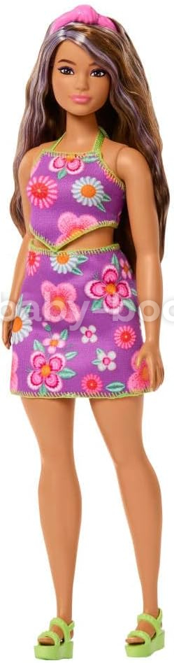 Păpușa Barbie Fashionistas #244 aduce la viață un stil vibrant și o poveste incluzivă cu ținuta sa florală impresionantă și aspectul la modă cu accente mov. Parte a diversei colecții Barbie Fashionistas care celebrează diferite tipuri de corp și declarații de modă, această păpușă are părul castaniu, ondulat și curbat, cu accente mov vibrante și o bentiță roz cu noduri pentru o pată de culoare suplimentară. Topul violet, fără spate, și fusta asortată prezintă un imprimeu floral atrăgător, în timp ce sandalele sale cu platformă verde aprins creează un contrast jucăuș, aducând la viață întregul aspect. Concepută pentru a reflecta experiența copiilor de astăzi, această păpușă la modă oferă posibilități nesfârșite pentru aventuri povestitoare - de la brunch-uri în aer liber până la cumpărături. Linia Fashionistas încurajează copiii să exploreze modul în care individualitatea se manifestă prin stil, făcând din această păpușă cadoul perfect pentru copiii care iubesc moda, jocul imaginativ și performanța diversă.