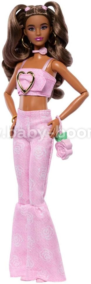 Barbie JJN72 Păpușa Barbie "Deluxe Style Fashion Doll №12" într-un top roz și blugi evazați