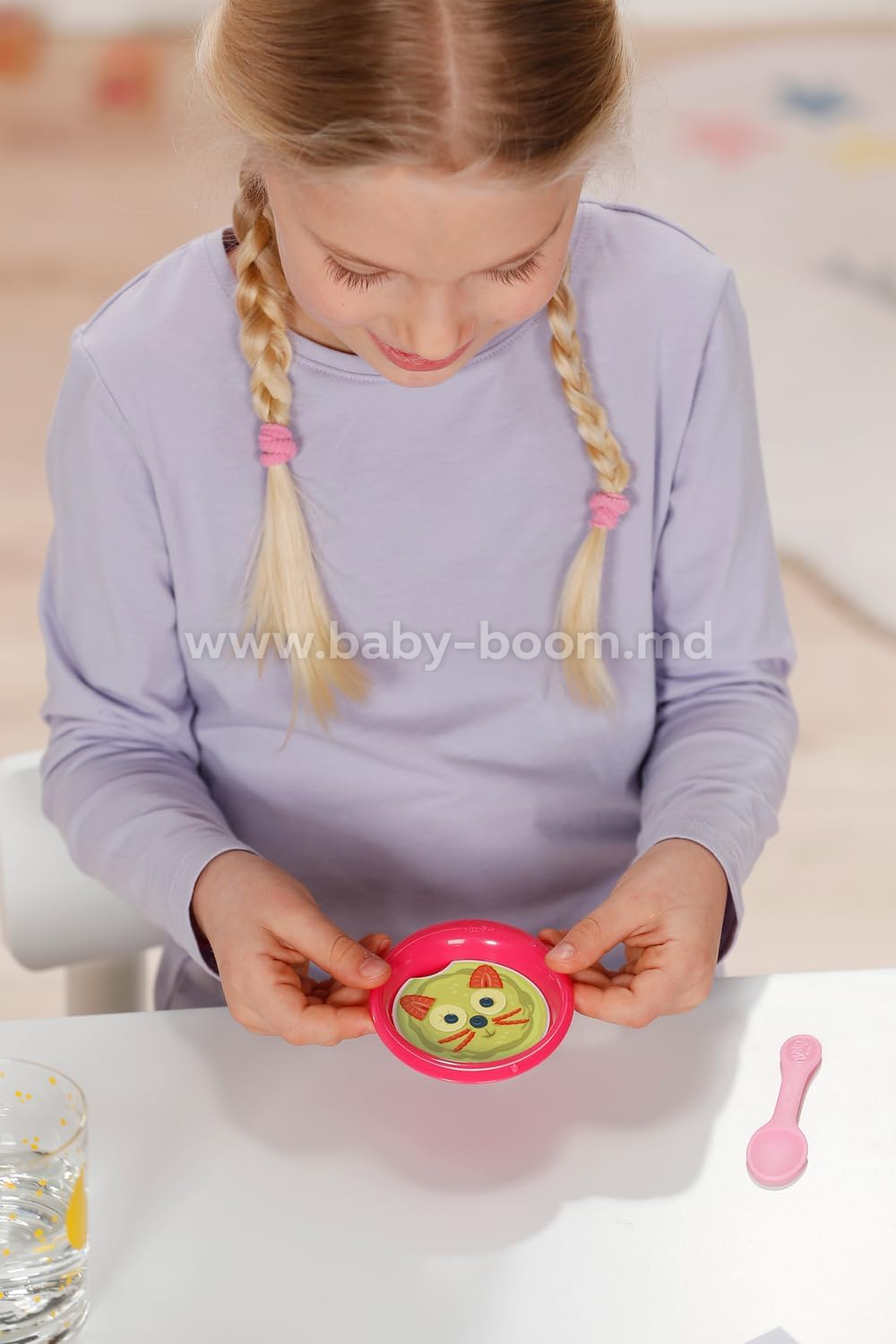 - Toarnă apă în farfurie sau în olită pentru a vedea cum se întâmplă magia. Când torni apă pe inserția de pe farfurie, apare o imagine drăguță cu mâncare;