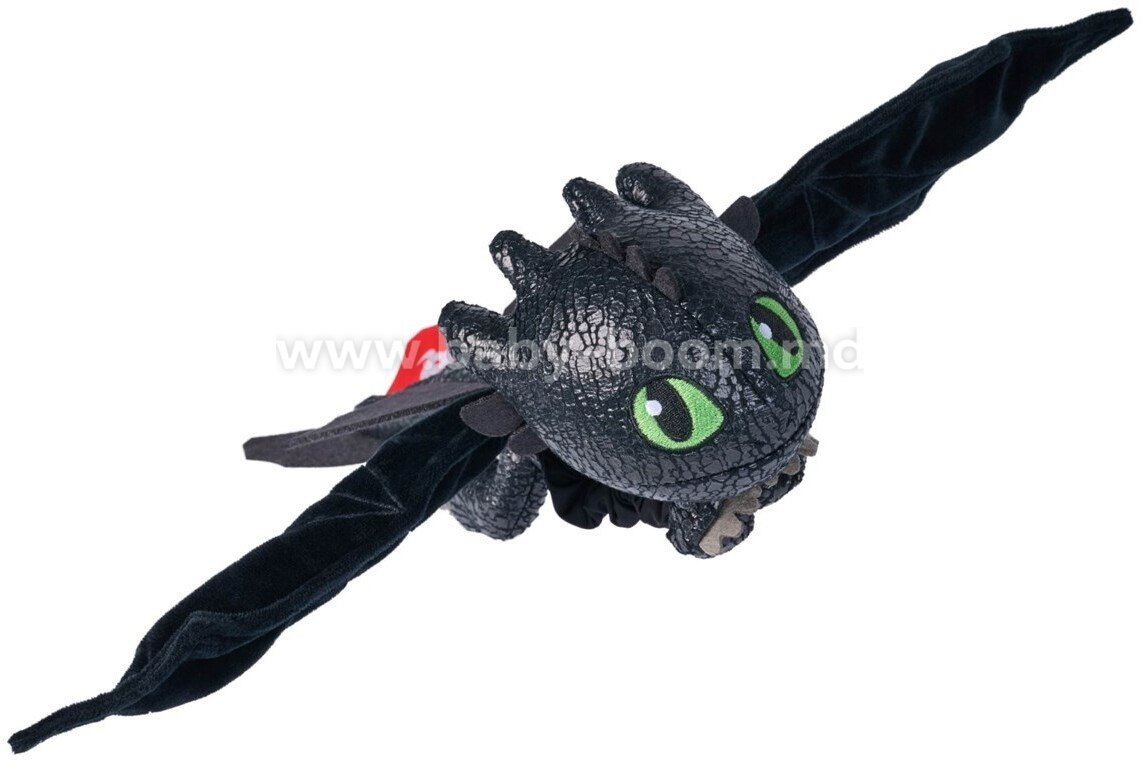 Zboară spre cer cu Toothless! Această jucărie de pluș inovatoare îl prezintă pe dragonul emblematic din „Cum să-ți dresezi dragonul” cu detalii meticuloase, inclusiv pluș negru moale cu solzi strălucitori, gheare din fetru și ochi brodați de un verde strălucitor.