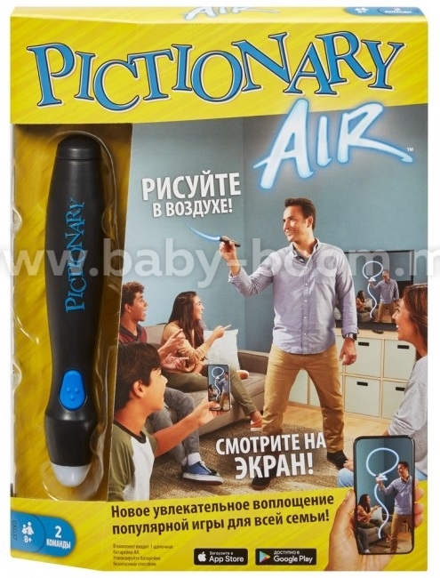 JOC: Luați o carte de cuvânt din set, porniți stiloul Pictionary Air și pregătiți-vă să pictați! Echipa ta va încerca să ghicească cuvântul pe măsură ce desenezi indicii în aer. Aplicația Pictionary Air (disponibilă pentru dispozitivele iOS și Android) urmărește ceea ce desenați, așa că păstrați vârful ascuțit al stiloului Pictionary Air îndreptat către camera dispozitivului dvs. inteligent. Scorul jocului este păstrat în aplicație pentru distracție și joc ușor.