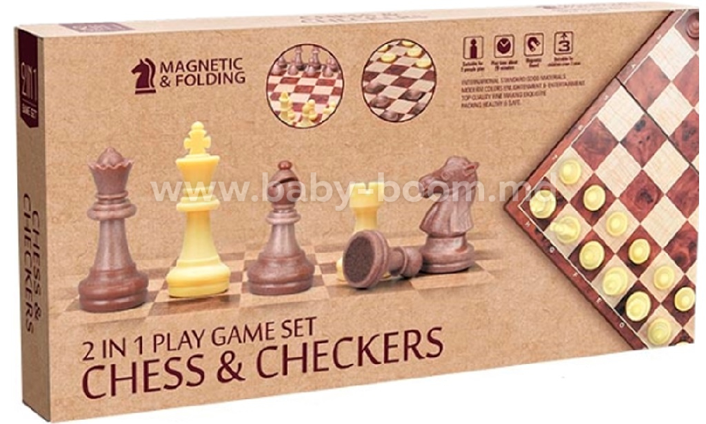 Setul de joc 2 în 1 „Șah și dame” este un joc clasic de strategie, potrivit atât pentru copii, cât și pentru adulți. Setul permite alegerea între două jocuri populare, în funcție de preferințe.