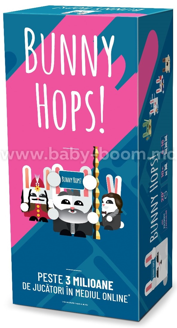 Noul joc de petrecere Bunny Hops este perfect pentru serile cu prietenii și familia. Ghiciți cât mai multe cuvinte într-un minut: expresii faciale, cântând, fredonat sau dans. Zeci de puzzle-uri și 900 de cuvinte de ghicit vă vor oferi ore întregi de distracție. Bunny Hops oferă și suport digital prin aplicația Bunny Hops, care poate fi descărcată pe iOS și Android.