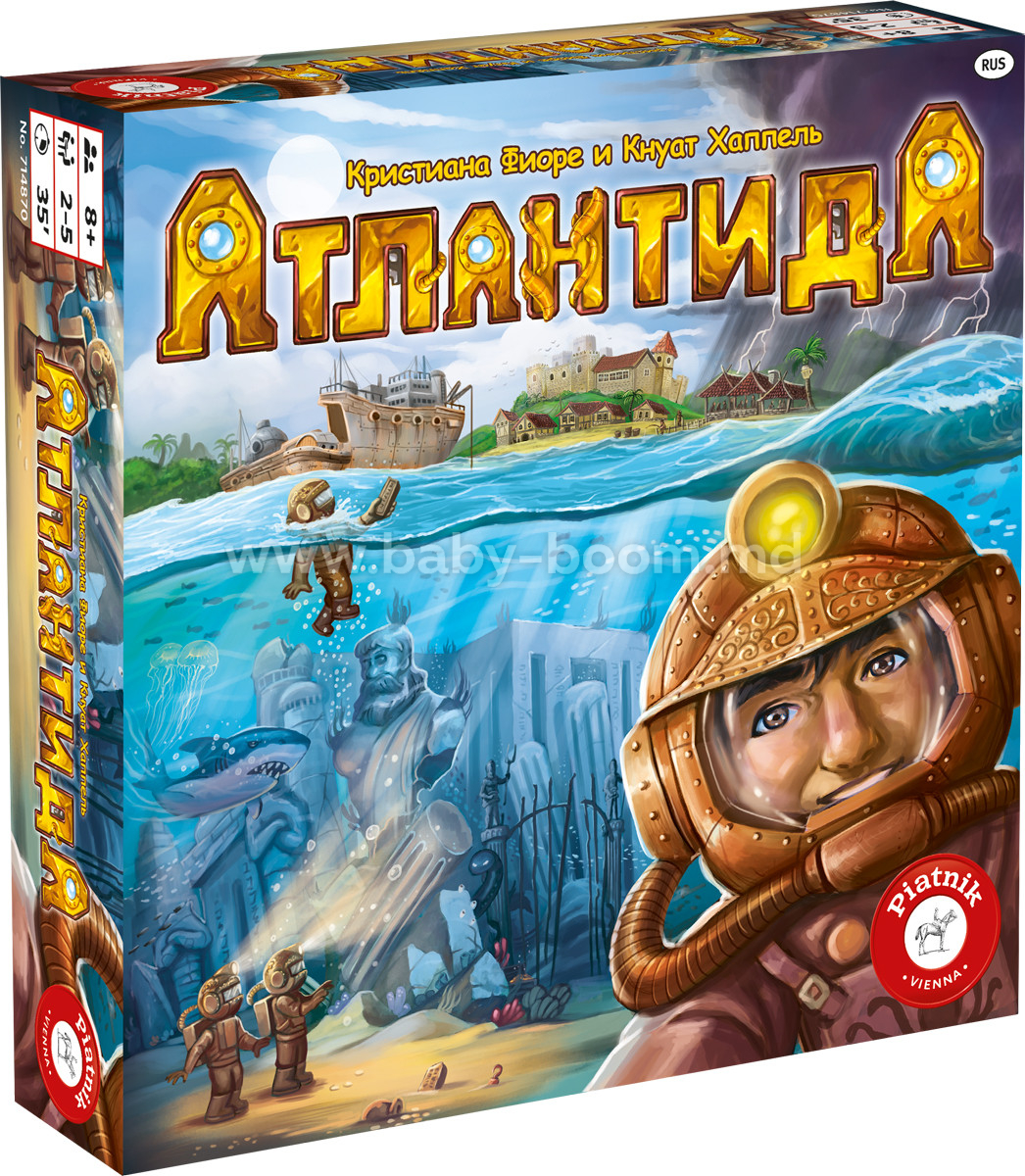 Jocul de societate Piatnik Atlantis este un joc captivant de gândire strategică. Comorile Atlantidei scufundate îi forțează din nou pe oamenii de știință disperați să înceapă să caute.