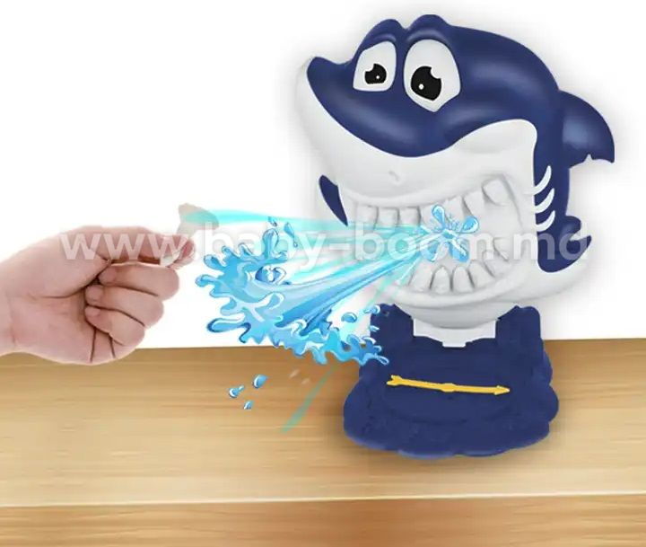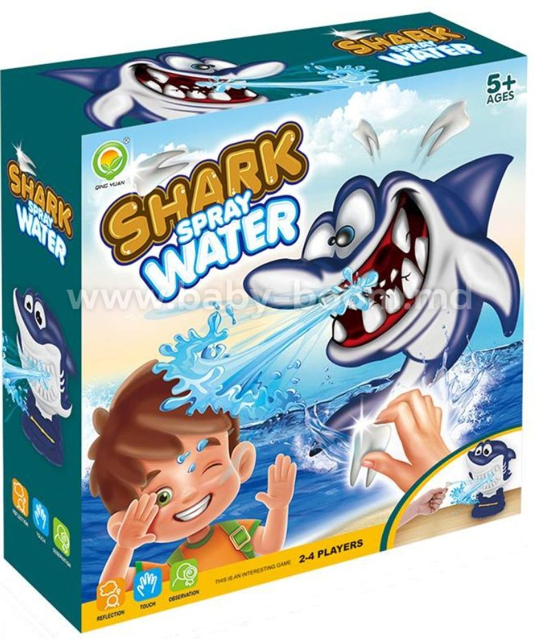 Jocul de masă „Shark Spray Water” este un joc amuzant și plin de acțiune pentru copii de la 5 ani și pentru întreaga familie. În centrul jocului se află un rechin simpatic care poate pulveriza apă în mod neașteptat. Jucătorii fac mutări pe rând și încearcă să nu declanșeze stropirea cu apă.