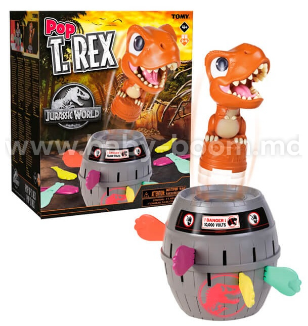 Pop Up T-Rex de la TOMY Games te va duce în inima Jurassic World! Se zvonește că dinozaurul încearcă să scape din cutia lui și că abia așteaptă să iasă. Singura modalitate de a afla dacă este prins sau liber este să înfigi ceva prin părțile laterale ale cutiei de cretă. Pulsul îți va crește, degetele îți vor tremura... Poți supăra T-Rex-ul?