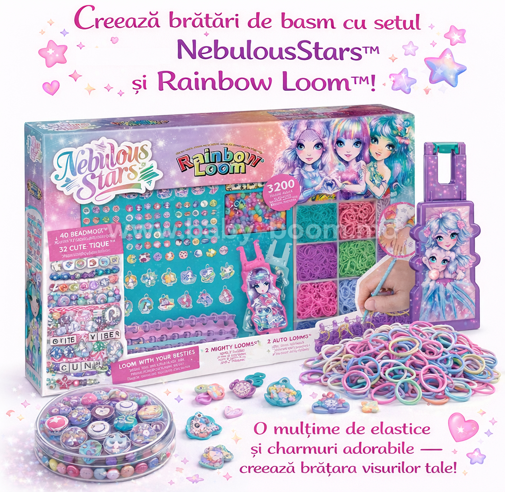Oferă-i copilului tău ocazia de a pătrunde în lumea tainică și plină de magie a universului Nebulous Stars. În colaborare cu legendarul brand Rainbow Loom, a fost creat acest mega-set pentru împletit brățări, care transformă lucrul manual într-o adevărată aventură stelară.