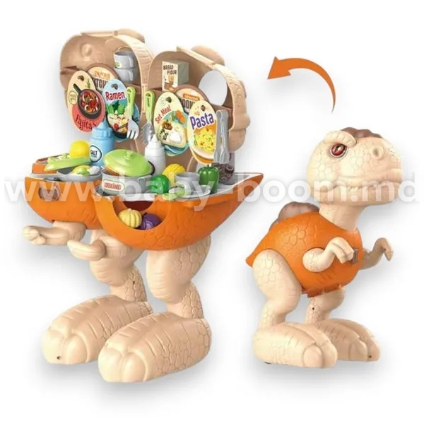 Acest set de joacă prezintă o bucătărie pentru copii în formă de dinozaur Tyrannosaurus rex, care se transformă dintr-o figurină într-un suport de bucătărie complet funcțional, cu 51 de piese. Este conceput pentru jocul de rol, ajutând la dezvoltarea imaginației și a abilităților manuale.