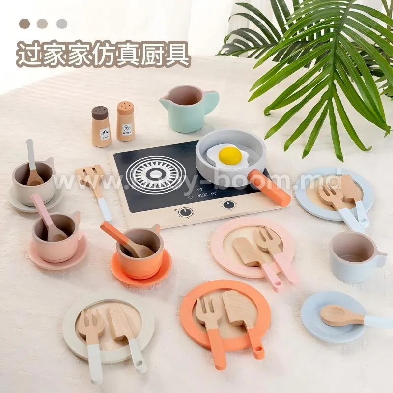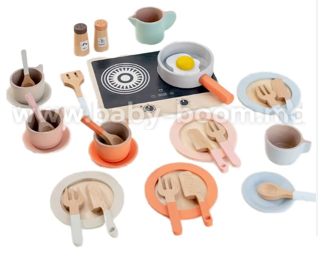 Acest set de joacă din lemn pentru copii este alegerea perfectă pentru părinții care doresc să le ofere copiilor lor, băieți și fete, oportunitatea de a-și dezvolta abilitățile culinare și sociale prin joacă. Acest set de tacâmuri este fabricat din lemn natural, fiind ecologic și sigur pentru copii. Include diverse ustensile de bucătărie, cum ar fi farfurii, căni, linguri și furculițe, permițând copiilor să simuleze procesul de gătit și de aranjare a mesei. Aceste jucării nu numai că distrează, dar promovează și dezvoltarea motricității fine, a imaginației și a abilităților sociale. Fiecare piesă de vase este fabricată din materiale sigure și de înaltă calitate. Culorile strălucitoare și formele variate atrag atenția, iar detaliile realiste ajută la crearea senzației unei bucătării reale. Acest set de joacă din lemn pentru copii este un cadou minunat pentru micii bucătari, permițându-le să se bucure de proces. Alegerea unui set de joacă din lemn este un pas către o copilărie sănătoasă și creativă.