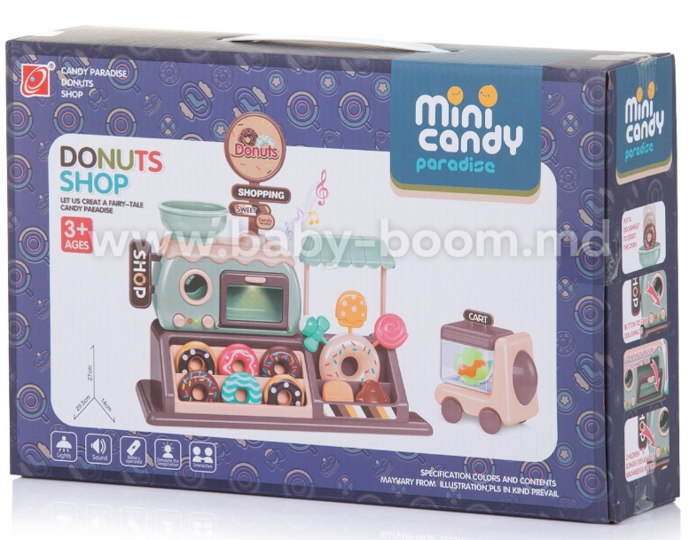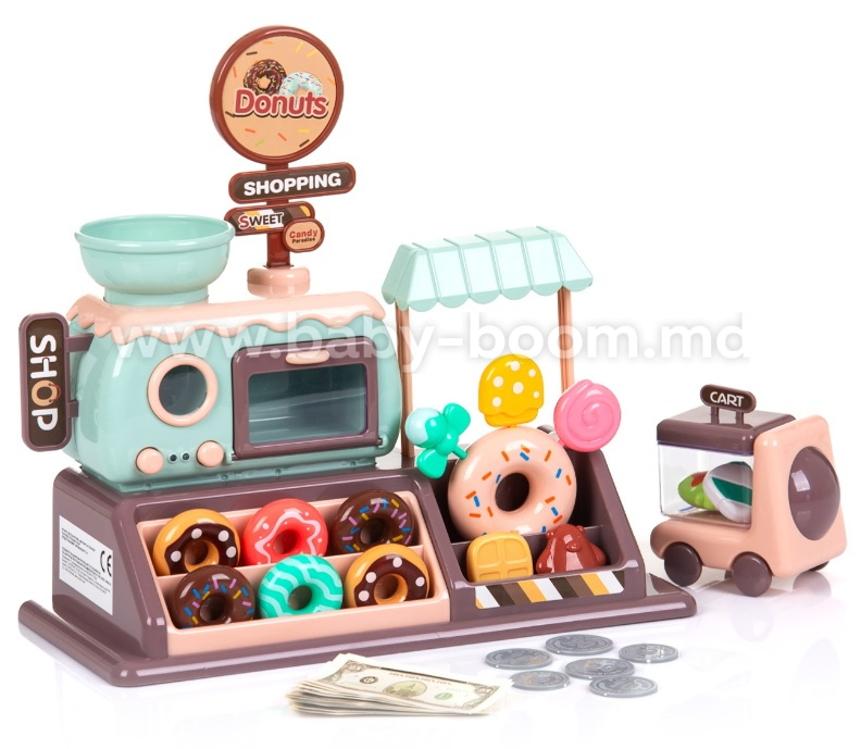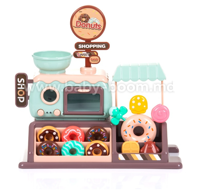 - Include 34 de jucării și accesorii individuale - mini cuptor cu butoane și ușă mobilă, gogoși, prăjituri și bomboane, monede și bancnote, mini mașină;