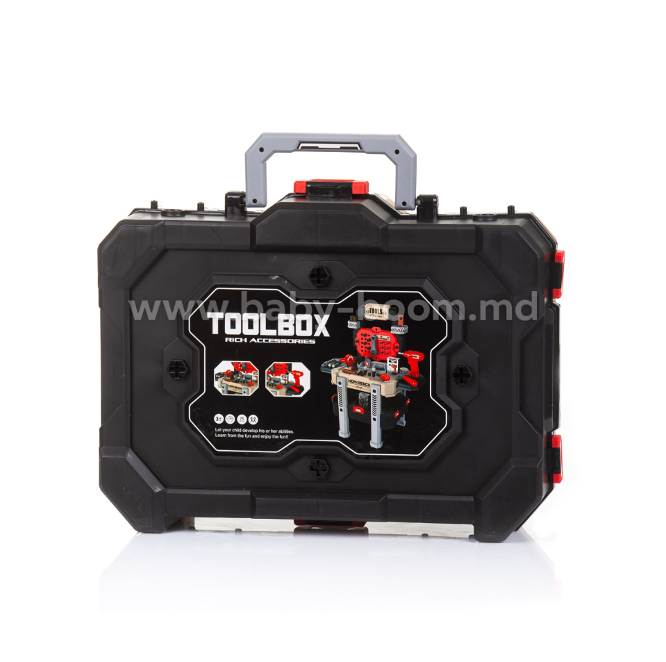 Setul de joacă 2 în 1 cu valiză și masă de scule este o jucărie distractivă de rol pentru micii pasionați de inginerie. Se transformă cu ușurință dintr-o valiză de plastic convenabilă și portabilă, cu mâner, într-o masă de scule cu o varietate de unelte și accesorii, permițând copiilor să își dezvolte abilități tehnice.