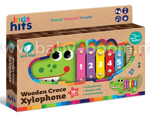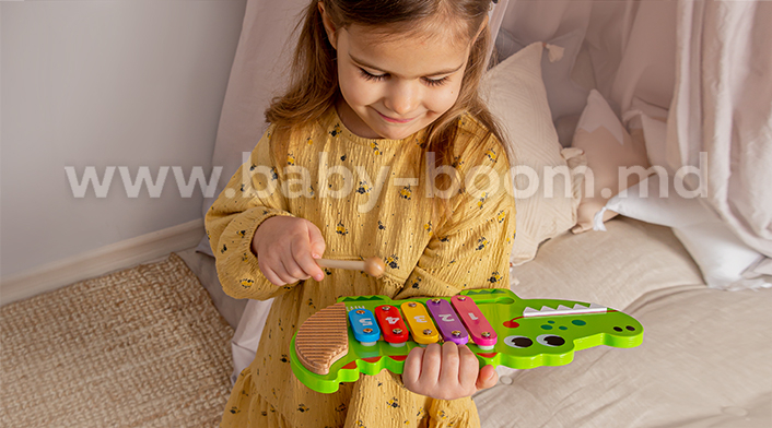 Acest xilofon colorat în formă de crocodil inspiră tinerii muzicieni să facă primii pași în creativitatea muzicală! Sunetul unic și culorile vibrante fac această jucărie muzicală din lemn captivantă pentru copiii mici. Micuților le va plăcea să apese clapele, să învețe ritmuri și tonuri noi și să-și interpreteze propriile compoziții pe sunetele trosnitoare ale cozii crocodilului. Cu această jucărie minunată, copiii pot învăța culori și numere, își pot dezvolta abilitățile motorii și senzoriale și chiar își pot etala talentul muzical!