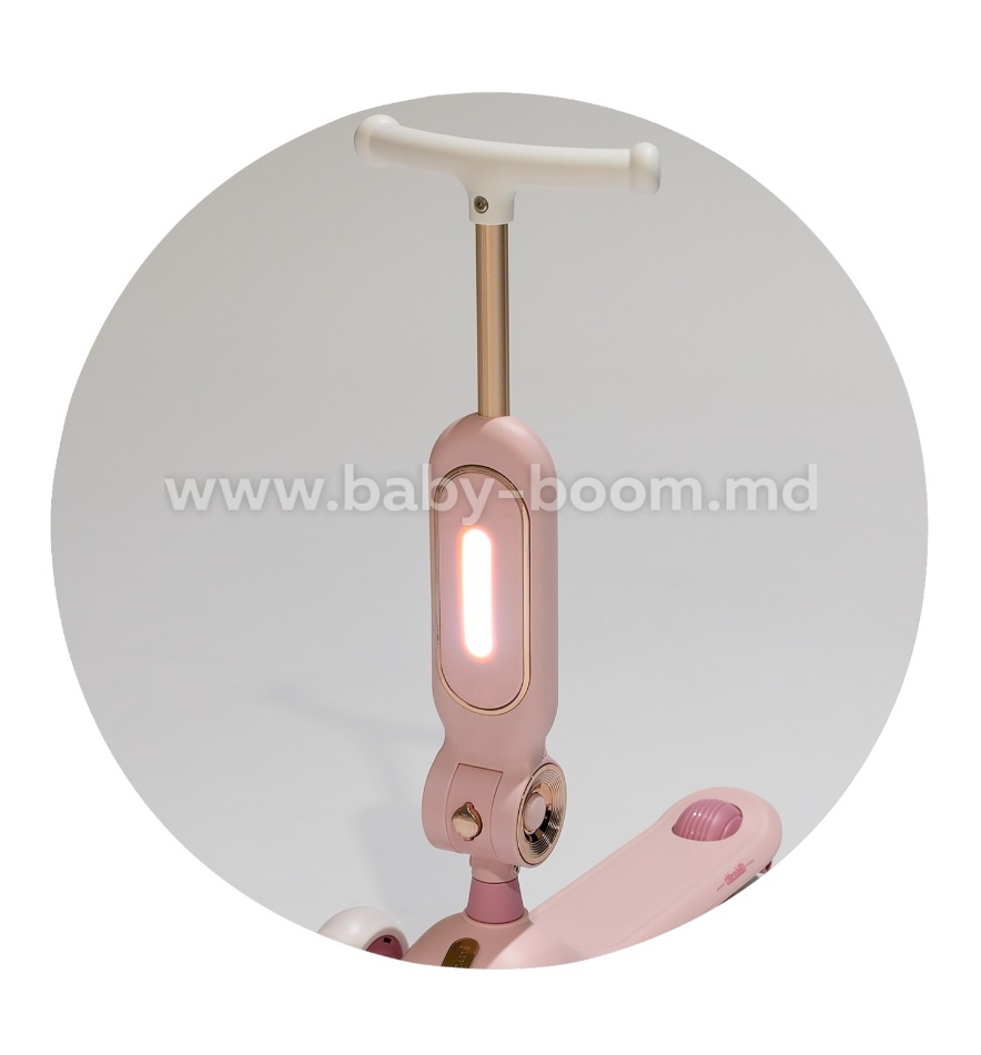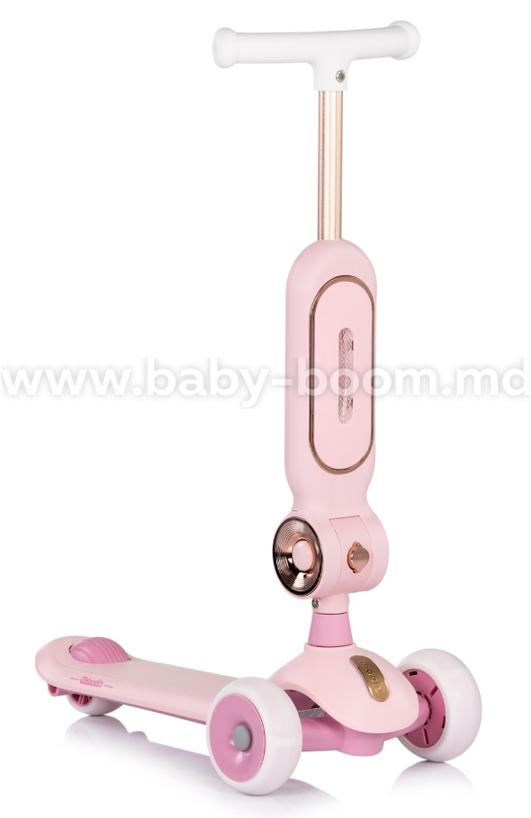 Chipolino Bloomi este o trotinetă multifuncțională pentru copii, cu scaun, concepută pentru a oferi stabilitate, confort și divertisment copiilor mici, promovând în același timp dezvoltarea echilibrului și a coordonării.