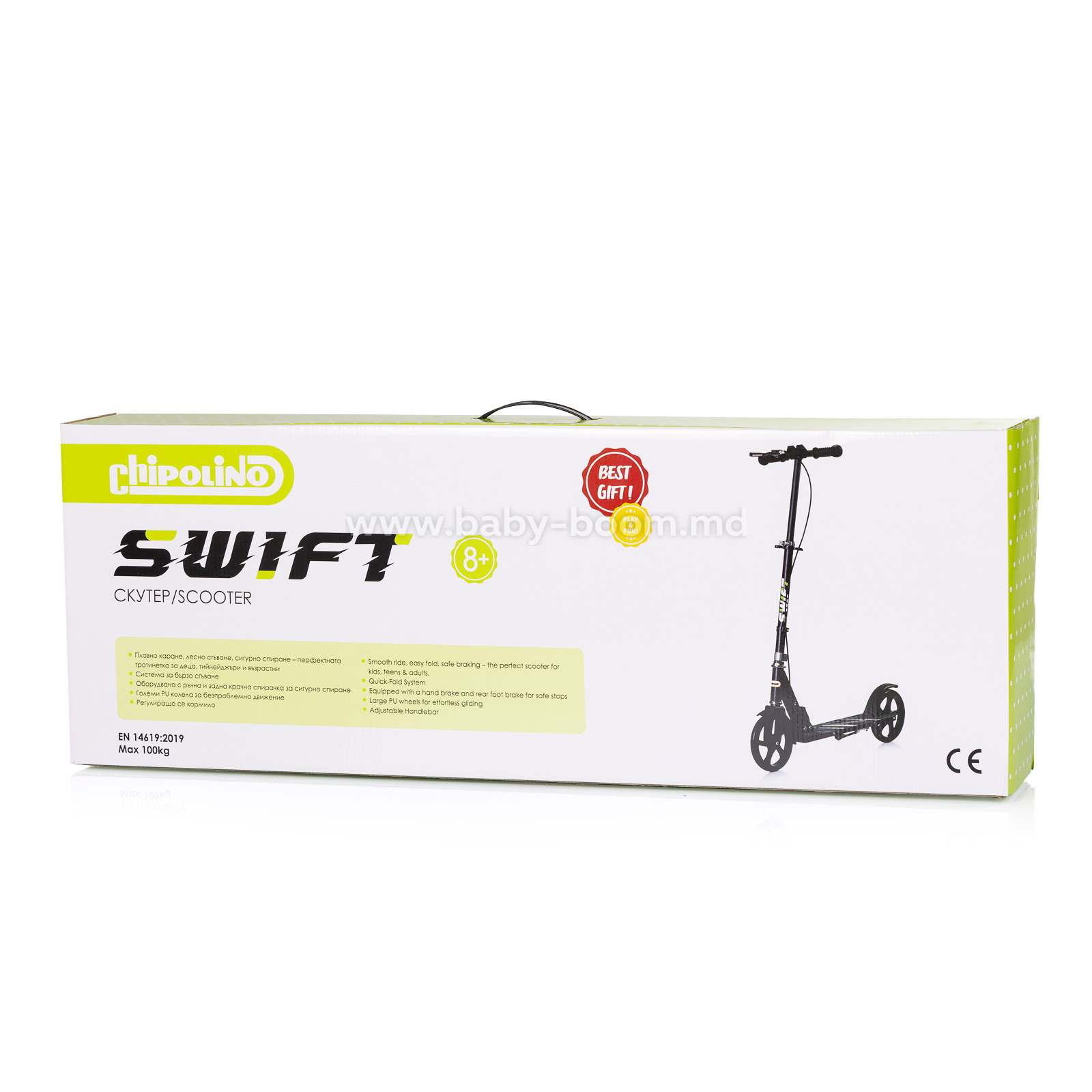 Trotineta SWIFT de la Chipolino este o trotinetă urbană stilată și rezistentă, potrivită pentru copii de la 8 ani în sus, precum și pentru adolescenți. Proiectată pentru confort și siguranță, este ideală atât pentru plimbări de agrement, cât și pentru utilizarea zilnică.