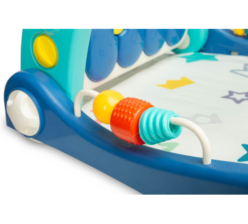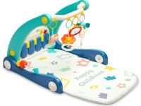 Premergătorul muzical 2 în 1 este o jucărie colorată pentru bebelușii care fac primii pași. Covorașul este echipat cu zornăitoare în formă de animale prietenoase, atașate de tăblia patului, și o oglindă care va încânta bebelușul. După ce a stăpânit roțile din față și a separat covorașul, copilul va putea merge fără probleme ținându-se de premergător. Panoul multimedia cu butoane mari va face jocul mai captivant, iar jucăriile senzoriale atașate lateral vor ajuta la dezvoltarea copilului.
