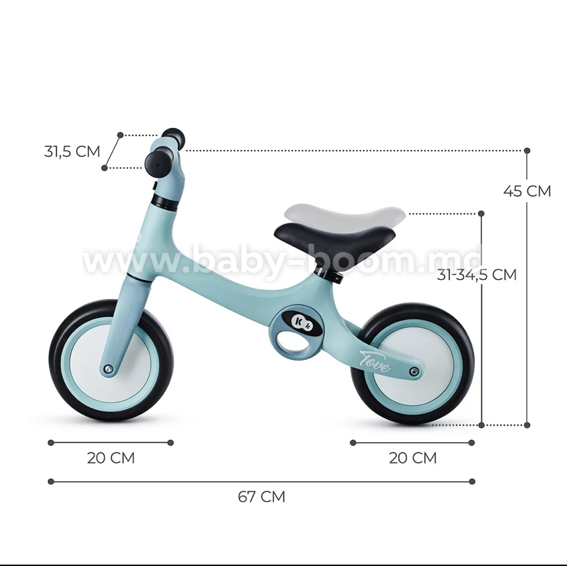 Bicicleta de echilibru TOVE are un design unic, materiale durabile, dar ușoare și o greutate redusă de numai 2 kg. Potrivit pentru copii de la 18 luni până la 25 kg. Acest lucru va ajuta la dezvoltarea echilibrului și a abilităților motorii prin joc. TOVE are două mânere de transport, ceea ce le face mai ușor pentru părinți să se plimbe cu copiii care se plictisesc repede. Pentru a asambla o bicicletă cu echilibru, sunt suficienți 3 pași simpli pentru a o pregăti pentru drum. TOVE are un scaun reglabil și mânere antiderapante pe ghidon. Roțile ușoare din spumă sunt și ele un mare avantaj - nu au spițe și nu au pompe.