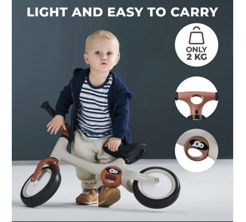TOVE cântărește doar 2 kg. Bicicleta este fabricată din plastic durabil PP și TPR, ceea ce o face rezistentă la căderi, lovituri și zgârieturi.