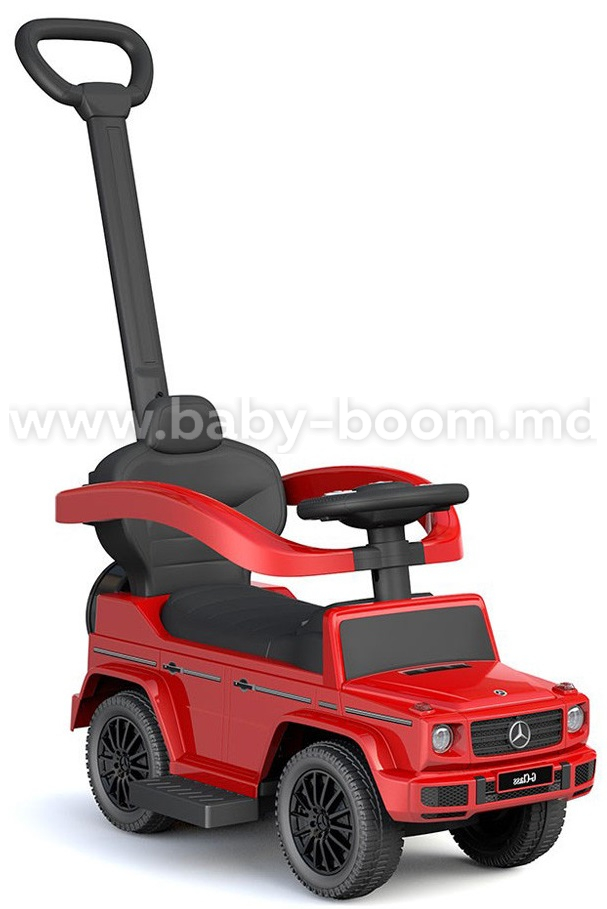 Mașina cu mâner Mercedes Benz G63 Baby Mix este realizată din plastic de înaltă calitate. Aspectul sportiv al jucăriei va atrage atenția nu numai a fiecărui copil, ci și a părinților. Îl va face pe micul tău pilot să se simtă ca un adevărat Mercedes. Bouncerul ajută la dezvoltarea abilităților motorii ale copilului dumneavoastră și garantează multă distracție. Jucăria este echipată cu un panou muzical pe volan cu două butoane cu un semnal sonor fantezist și melodii. Aparatul este conceput atât pentru cei mai mici copii care pot sta, cât și pentru copiii care au învățat deja să meargă. Copiii vor primi multă plăcere și divertisment de la mașina de jucărie, deoarece are aspectul unic al unui Mercedes adevărat, un scaun larg confortabil cu spațiu de depozitare, un volan, roți din plastic de înaltă calitate și un confortabil și la în același timp, mâner de control durabil cu care puteți controla o mașină de jucărie. Mânerul de control, cotierele și suporturile pentru picioare pot fi îndepărtate, astfel încât copilul să poată folosi mașina de jucărie ca un împingător clasic.