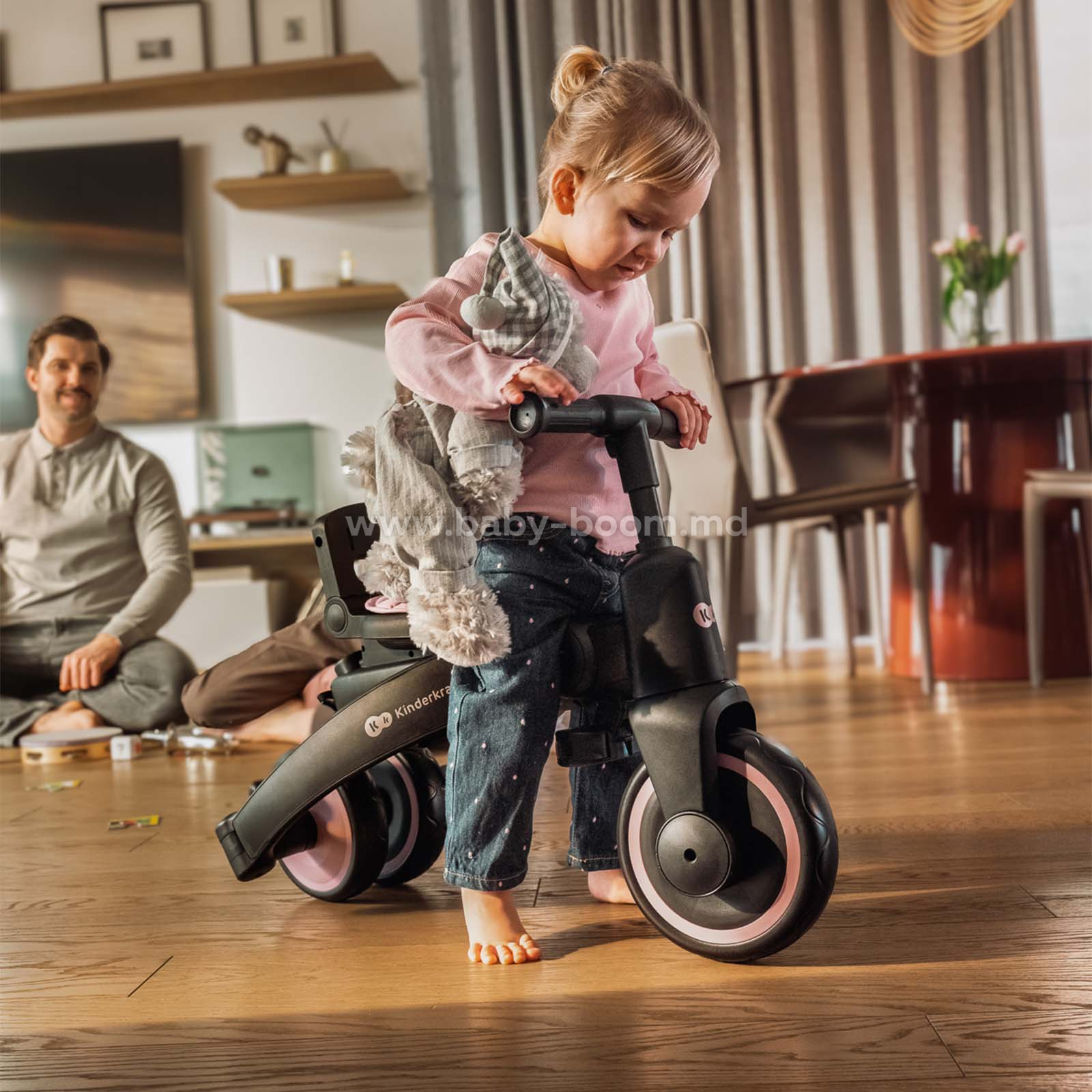 • Bicicleta pliabilă pentru copii Kinderkraft JAZZ 3 îmbină funcționalitatea unui triciclu cu posibilitatea de control parental și etapa de învățare a mersului. Datorită celor 6 moduri de utilizare, modelul se adaptează dezvoltării copilului — de la poziția cu fața spre părinte și control total, până la pedalare independentă și modul de bicicletă fără pedale. Această soluție reduce necesitatea mai multor produse și răspunde nevoilor familiei în diferite etape de creștere.