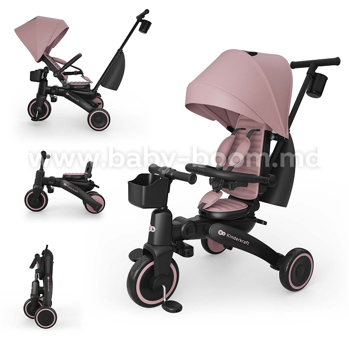 - Bicicleta pliabilă pentru copii Kinderkraft JAZZ 3 îmbină funcționalitatea unui triciclu cu posibilitatea de control parental și etapa de învățare a mersului. Datorită celor 6 moduri de utilizare, modelul se adaptează dezvoltării copilului — de la poziția cu fața spre părinte și control total, până la pedalare independentă și modul de bicicletă fără pedale. Această soluție reduce necesitatea mai multor produse și răspunde nevoilor familiei în diferite etape de creștere.