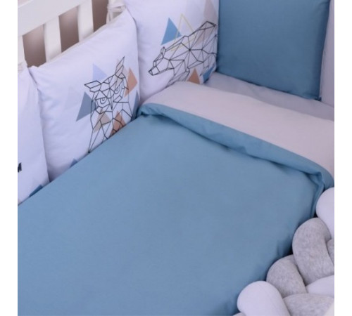 Постельный комплект изготовлен из натурального хлопка, обладающего хорошей воздухопроницаемостью, безопасен для детской чувствительной кожи, поскольку не вызывает аллергических реакций при использовании, имеет высокую износостойкость и долговечность, при частой стирке сохраняет свой внешний вид и прочность швов. Пододеяльник на молнии – удобный и практичный в использовании. Наполнитель бампера – холлофайбер – гипоаллергенный, хорошо держит форму, а подушки и одеяла - soft fiber - мягкий и приятный на ощупь, обеспечивает «дышащие свойства», терморегуляцию. Одеяло простёгано, что обеспечивает сохранность формы изделия после стирки. Все материалы постельного комплекта сертифицированы и отвечают высоким требованиям экологических стандартов.