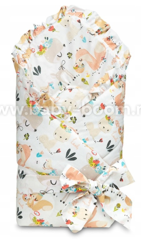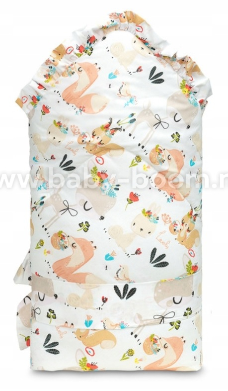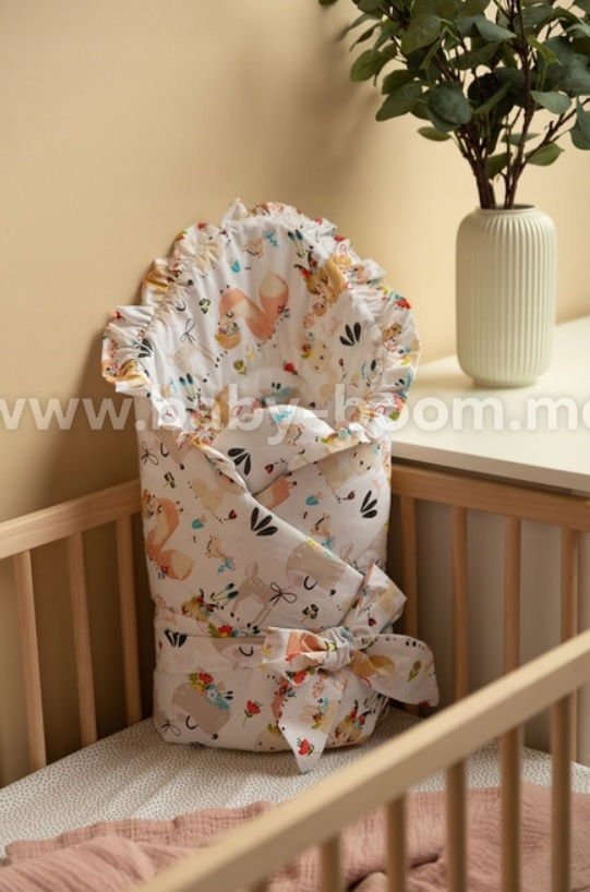Этот двусторонний детский одеяло-конверт с оборками создан специально для новорожденных и младенцев. Завязка с широкой хлопковой лентой позволяет удобно держать его во время кормления и укладывания спать. В разложенном виде конверт можно использовать как одеяло в кроватке или коляске. Его также можно использовать как игровой коврик. Конверт изготовлен из 100 % хлопка , наполнен пушистым силиконовым нетканым материалом и отделан стильной оборкой.