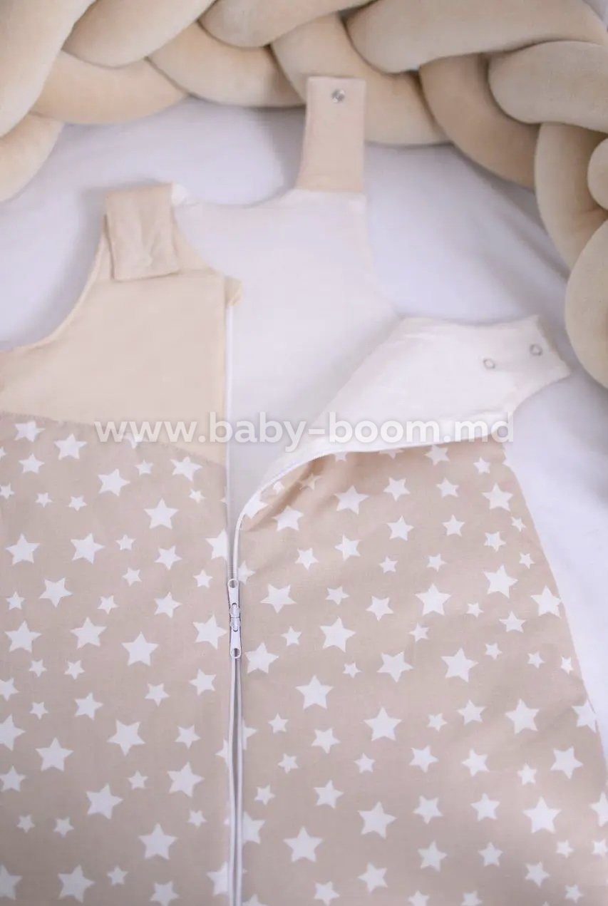 Маленькие дети во время сна могут сбрасывать с себя одеяло, или наоборот, накрываться им с головой. От некомфортной температуры ребенок будет просыпаться и плакать. Спальник являет собой одновременно одеяло, простынку и покрывало. Комфортная температура поддерживается благодаря натуральным тканям, из которых изготовлено изделие. Спальник не ограничивает движения ребенка ручками и ножками, создавая комфортный сон малыша.