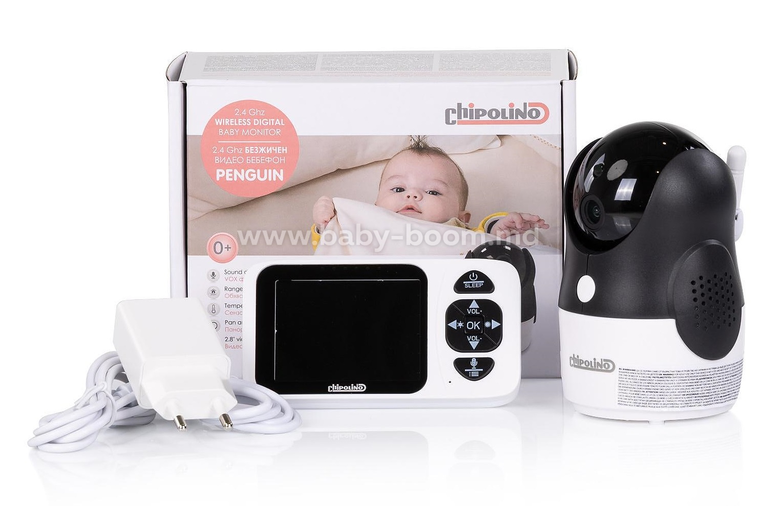 Chipolino VIBEFPE02501WH Видеоняня с 2,8-дюймовым ЖК-дисплеем "Пингвин"