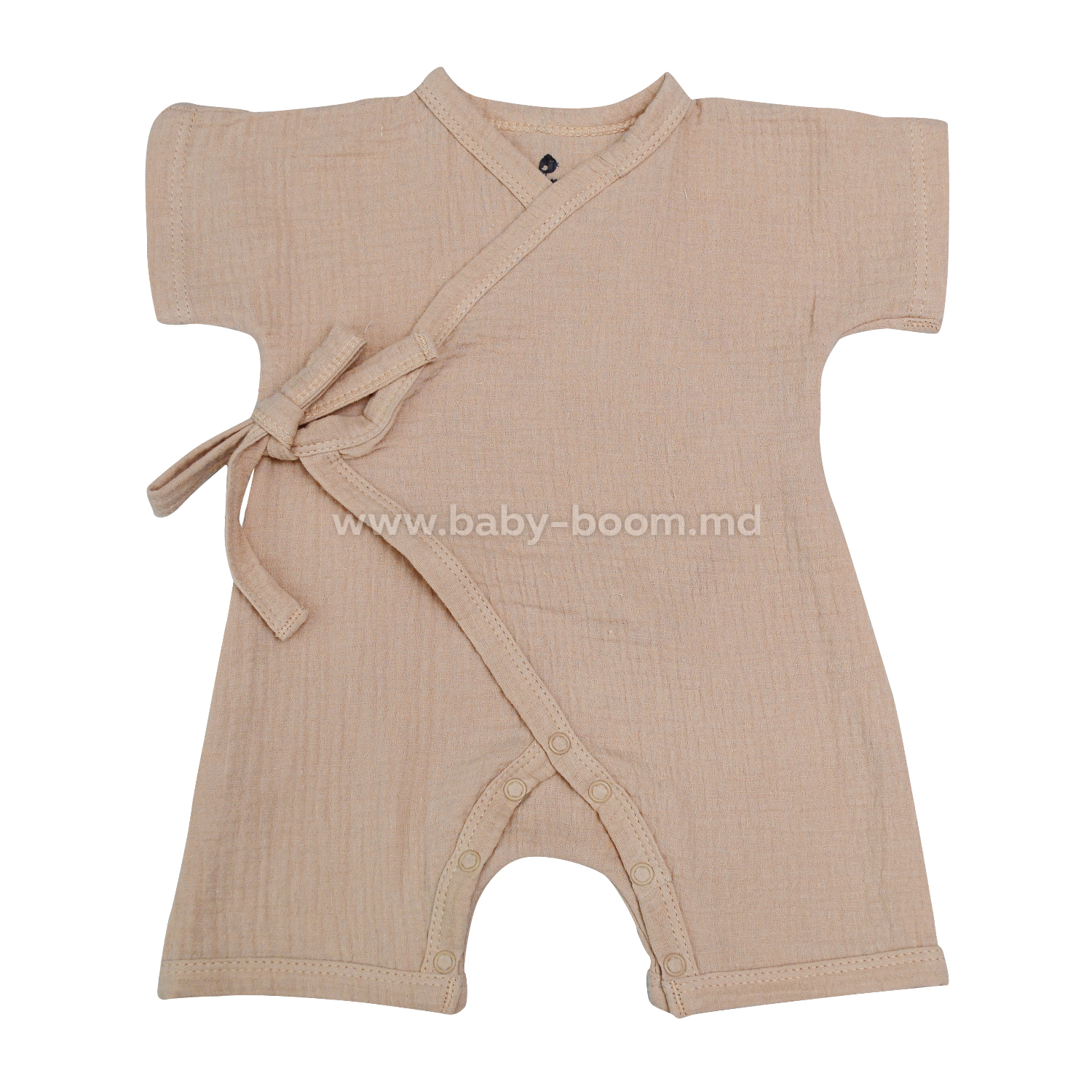Легкий песочник для ребенка сшит из муслина. Натуральный материал отлично подойдет для жарких дней. Короткий рукав и шорты не мешают ребенку активно двигаться. Застежка – между ног на кнопке, а снаружи на завязке. Эти детали позволяют легко переодевать малыша и просто менять подгузник.